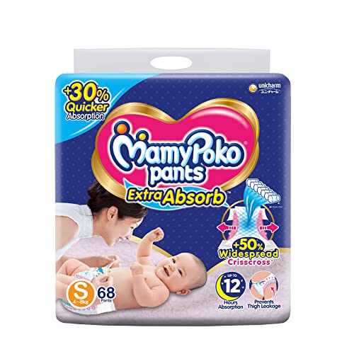 MamyPoko Pants Extra Absorb Baby Diapers, Small (S), 68 Count, 4-8 kg