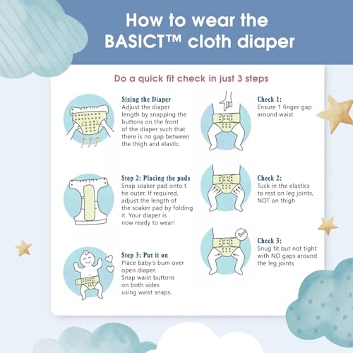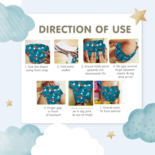 Mee Mee Reusable Baby Cloth Diaper, Double Leak Guard, High Absorption, Quick Dry, Stain-Proof Comfort & Protection, 3m+, Adjustable Waist & Height with snap Buttons, Absorbent Insert