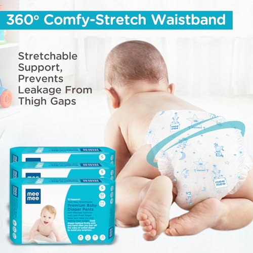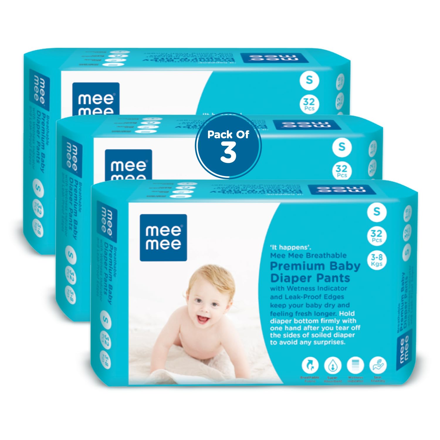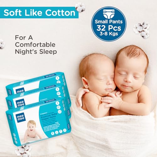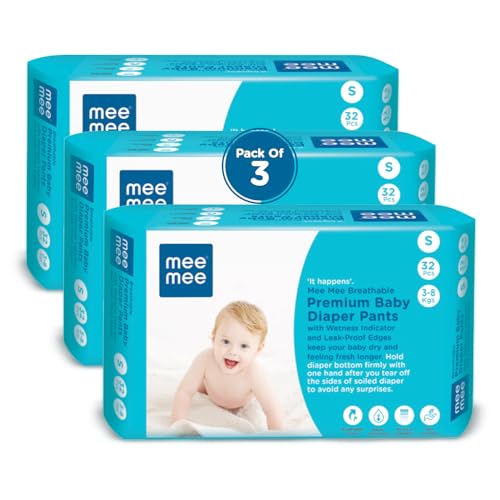 HomeBabyDiaperingBaby DiapersMee Mee Breathable Premium Baby Small (S) size Diaper Pants with Wetness Indicator and Leak-Proof Edges, 96 Pieces, S Size (Buy 2, Get 1 FREE)