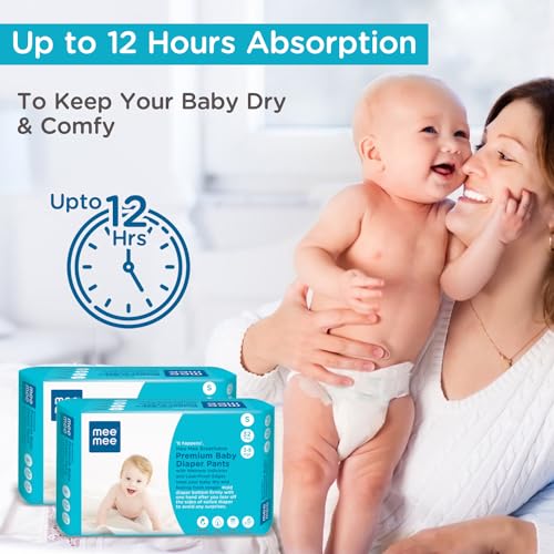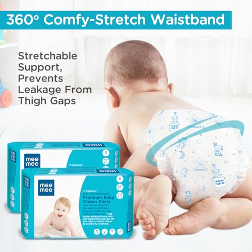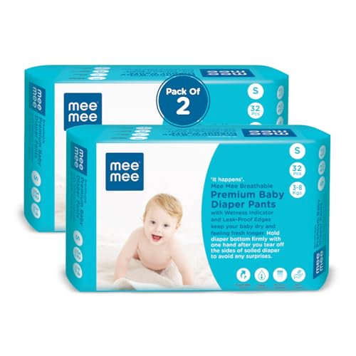 HomeBabyDiaperingBaby DiapersMee Mee Breathable Premium Small (S) size Baby Diaper Pants with Wetness Indicator and Leak-Proof Edges, Protection upto 12-hrs 64 Pieces, S Size