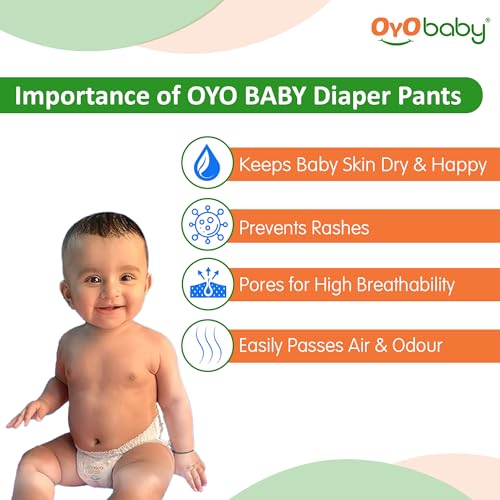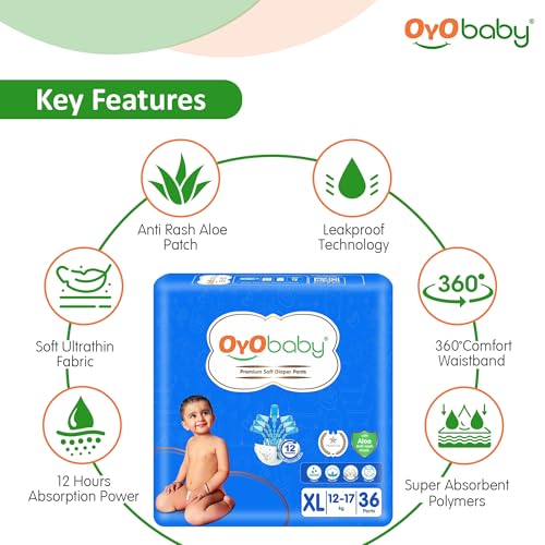 OYO BABY Comfortable Elastic Waistband Premium Soft Style Diaper Pants | Extra Large Size Baby Diapers Pants With Aloe Vera | 12-17 kg baby 36 Count (Pack of 1)