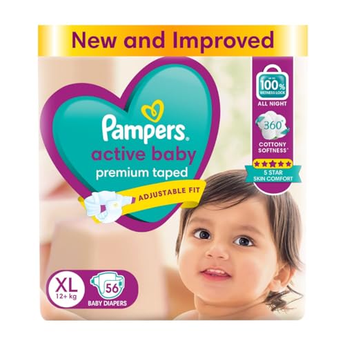Your little miracle deserves gentle protection & full night sleep and mothers & doctors have always trusted Pampers to provide the care. Presenting New Pampers Active Baby taped diapers which provides your baby 5 star skin protection! How you ask? It has an Adjustable Taped Fit which you can custom-fit as per your baby need. The sides & waist are stretchable with 360 Degree Cottony Softness providing best comfort for your baby skin. Its Extra Dry Layer helps prevent leakage by spreading baby urine evenly and Pampers unique Magic Gel technology absorbs baby pee full night for up to 12 hrs. This is how these are Our Best Pampers Taped Diapers ever! Taped diapers adjustable custom fit cottony soft 12 hrs absorption best Pampers.