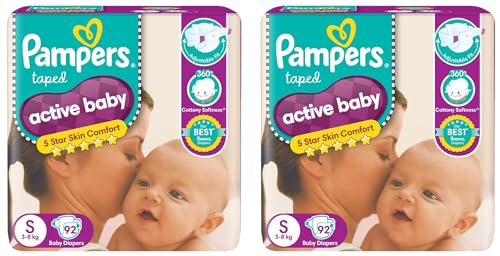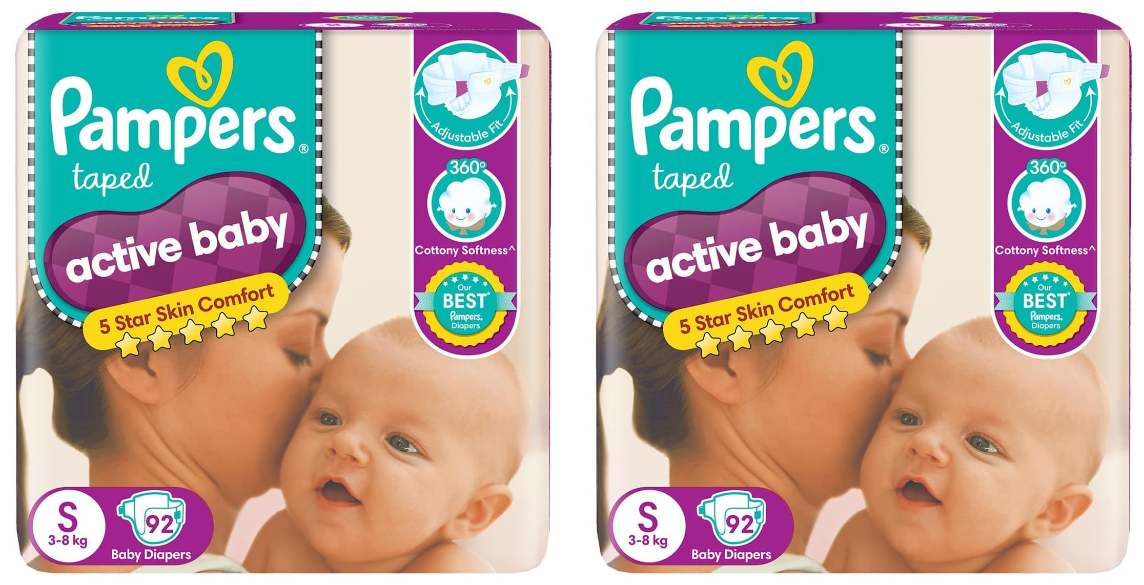 Pampers Active Baby Taped Diapers, Small size diapers, (SM) 92 count, taped style custom fit (Pack of 2)