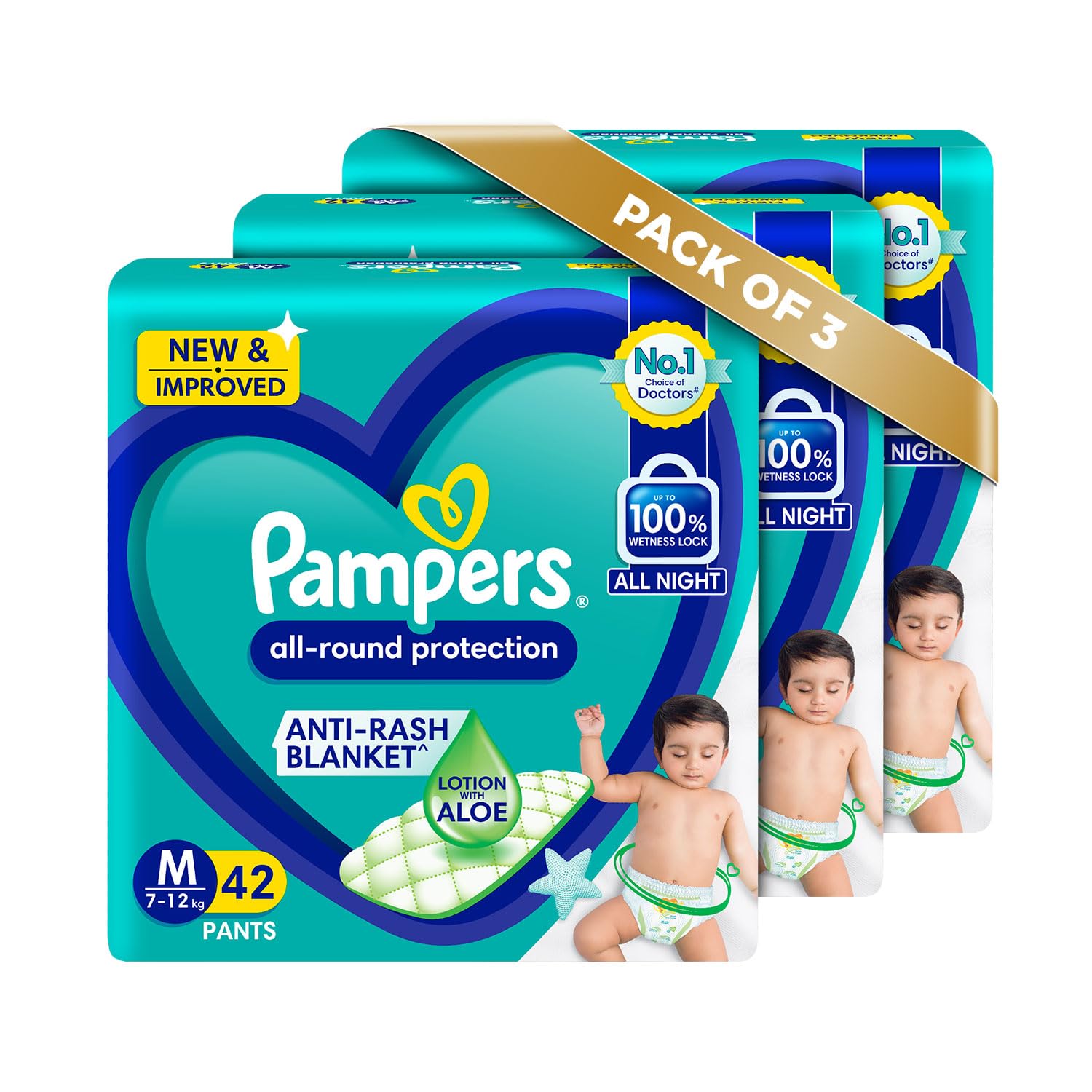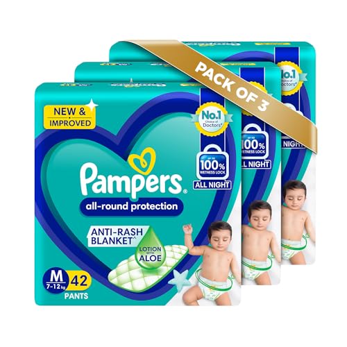 HomeBabyDiaperingBaby DiapersPampers All round Protection Pants, Medium size baby diapers (MD) 42 Count, Anti Rash diapers, Lotion with Aloe Vera (Pack of 3)