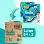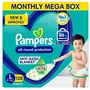 Pampers Baby Dry Pants Diapers Monthly Mega Box Large 128 CountPampers Baby-Dry pants style diapers are the only pants in India with Ultra Absorb Core Double Leak Guards and Lotion with Aloe Vera. Ultra Absorb Core provides your baby a new type of dryness overnight - breathable dryness. Magic gel locks wetness away to provide up to 12 hours of dryness. Now infused with baby lotion that has Aloe Vera helps protect your baby’s delicate skin from diaper rash and irritation. The new and improved product design enables a comfortable fit closer to the baby’s body and a flexible waist band that adapts to baby’s movements for a comfortable fit. A top layer with cotton-like soft material ensure a comfortable night’s sleep. Our pants with fun exterior graphics fun designs and characters ensure you enjoy with your baby.Pampers Baby Dry Diaper Pants Large (60 Count)Let your baby's skin breathe easy with the airy soft comfort offered by the Pampers diapers. These tape style Pamper diapers are easy to put on your baby and change which comes as a great help to mothers. These comfort fitting diapers with stretchable sides are best for your baby's rest and playtime Offering complete care and protection these baby diaper will help keep your baby smiling and comfortable at all times.. With Magic gel layer these baby diaper offers overnight dryness and protects your baby's delicate skin from rash.