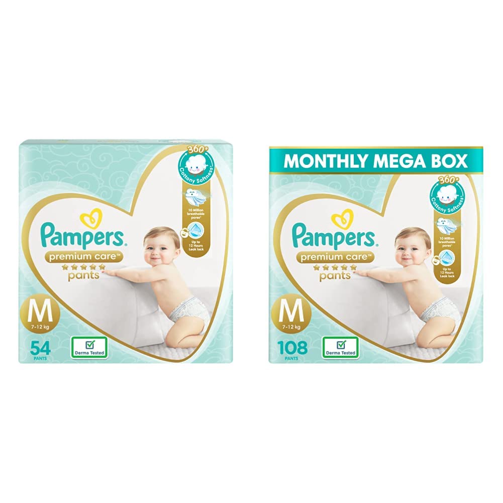 Pampers Premium Care Pants Diapers Medium 54 Count & Pampers Premium Care Pants Diapers Monthly Box Pack Medium 108 Count