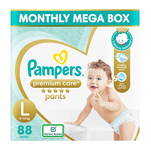 Pampers Premium Care Pants Diapers Monthly Box Pack Large 88 Count & Pampers Aloe Vera Baby Wipes - 72 Count (Pack of 3)