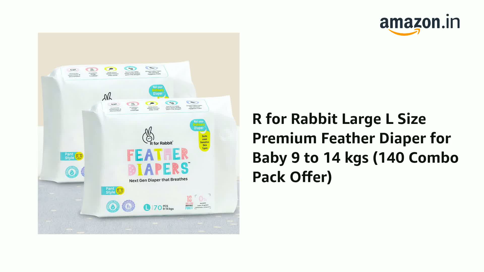 • Sizing Guide: R for Rabbit Feather Diaper with L Size is ideal for babies from 9-14kgs