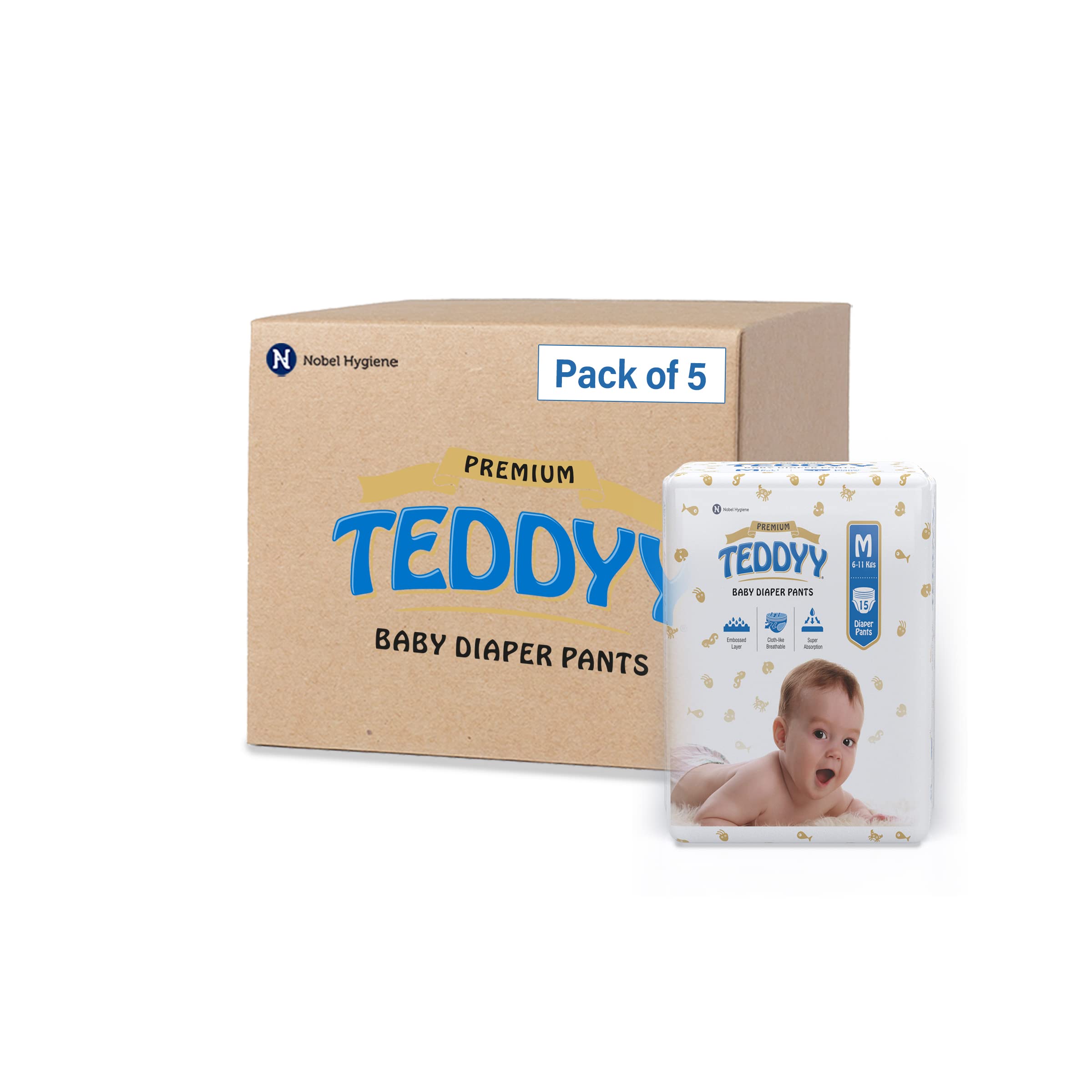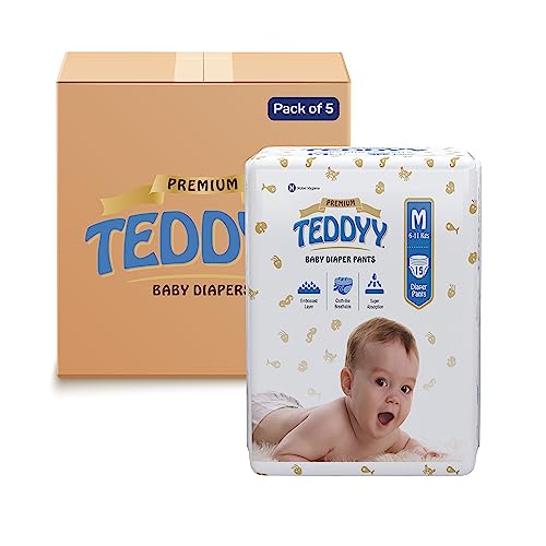 TEDDYY Baby Diapers Pants Premium Medium 75 Count (Pack of 5)