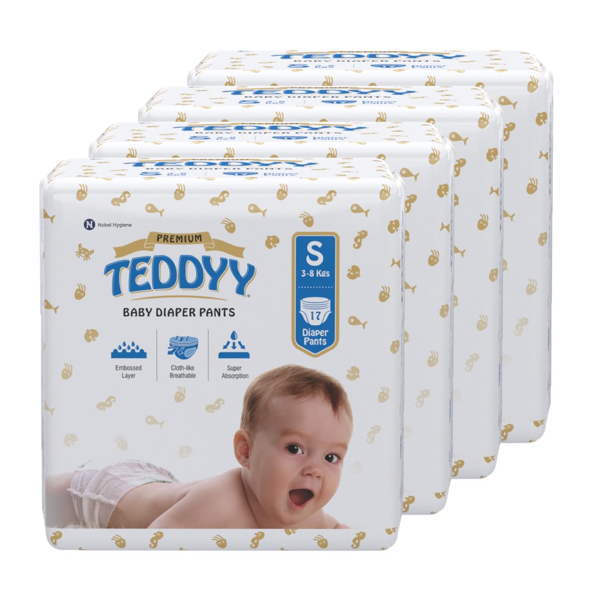 TEDDYY Baby Diapers Pants Premium Small 68 Count (Pack of 4), 4-8 kgs, Long Lasting Absorption, Anti - Bacterial