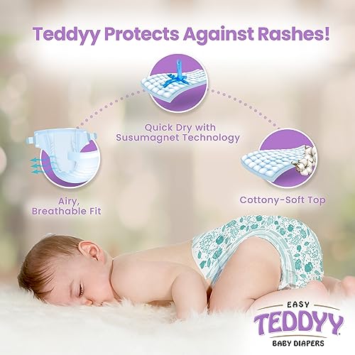 TEDDYY Easy Baby Diapers (White, 1-2 Months/Small) - 66 Count, 3-8 kgs, Long Lasting Absorption, Anti - Rash