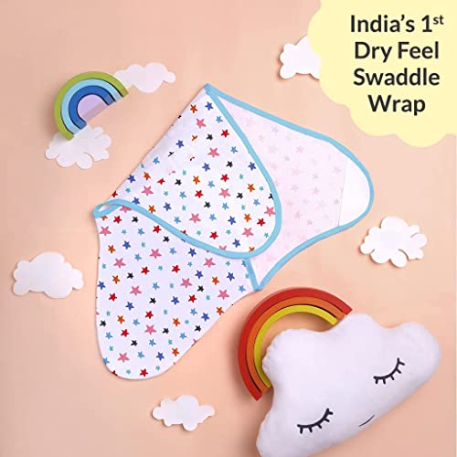 superbottoms Dry Feel Swaddle Wrap for Newborn | SuperDryFeel Layer to Keep Baby Dry | Extra Soft | 100% Cotton | Easy to Wear, Travel-Friendly Wrapper | 0-3 Months, Baby Wrappers | Pack of 3