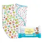 superbottoms 2 Dry Feel Swaddle Wrap with 3X Thicker Premium Wet Wipes | Dry Feel Layer Inside | Easy to Wear Wrapper | 98% Pure Water | Doctor Tested Best Baby Wipes (Unscented) - 40 Wipes | 0-3 M