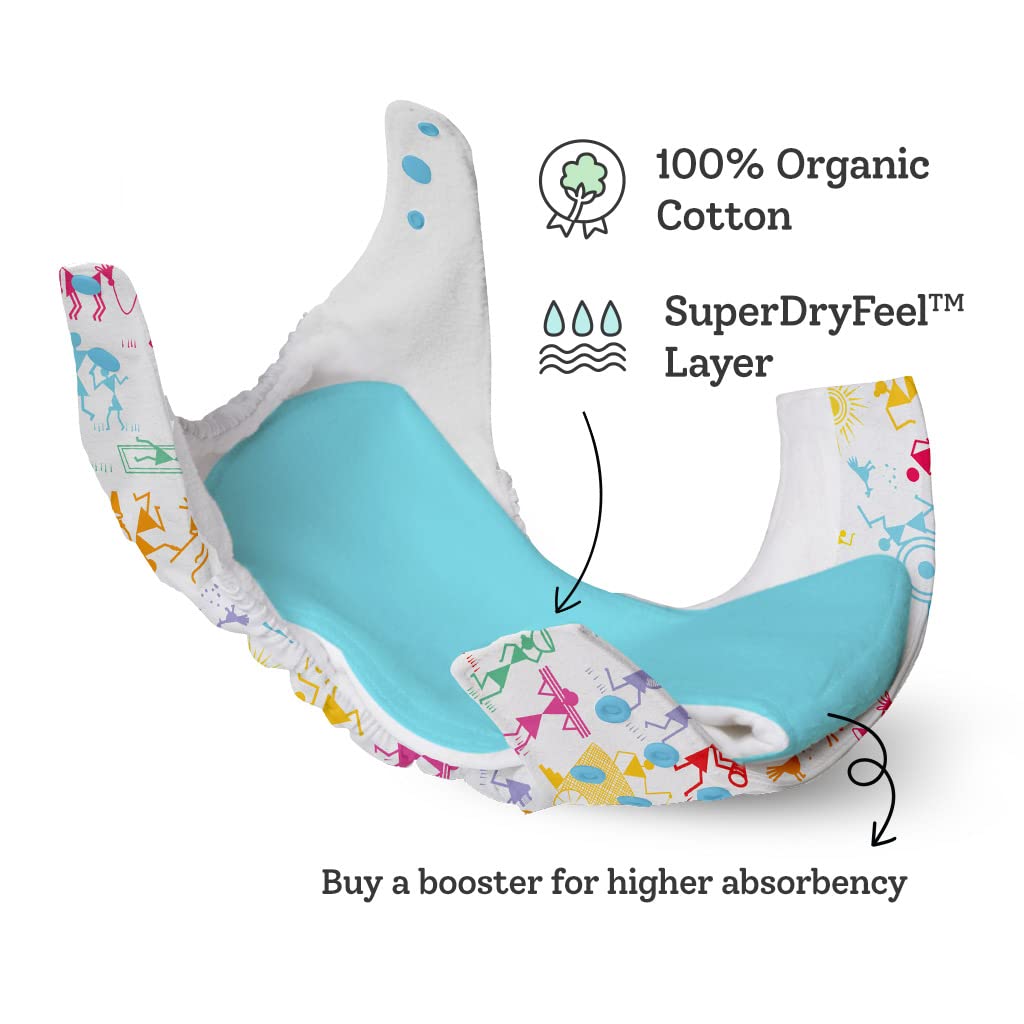 HomeBabyDiaperingCloth DiapersSuperBottoms UNO 5 Cloth baby Diapers Outer with XtraHydrating Wipes-72 Pack- |3x Thicker Premium Wet wipes 98% Pure Water | Reusable diaper for 5-17kgs| 5 Diaper with 1 Dry Feel Pad -7Pcs Pack