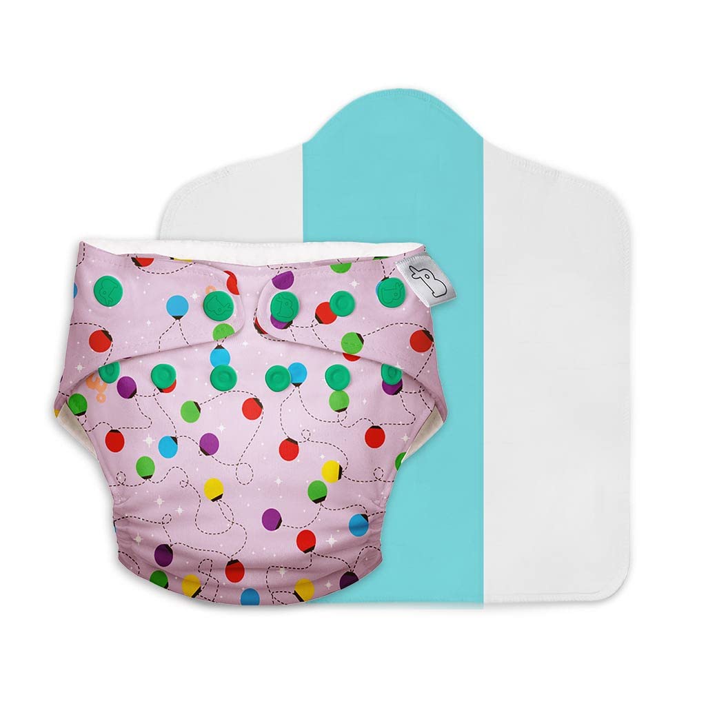 SuperBottoms UNO 5 Cloth baby Diapers Outer with XtraHydrating¢ Wipes-72 Pack- |3x Thicker Premium Wet wipes 98% Pure Water | Reusable diaper for 5-17kgs| 5 Diaper with 1 Dry Feel Pad -7Pcs Pack