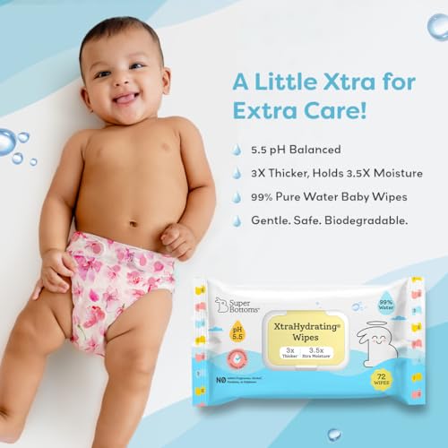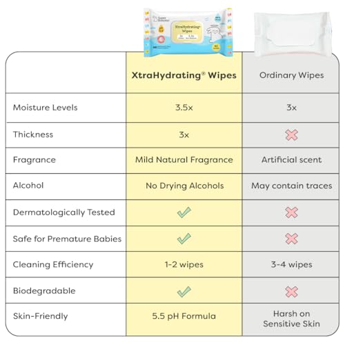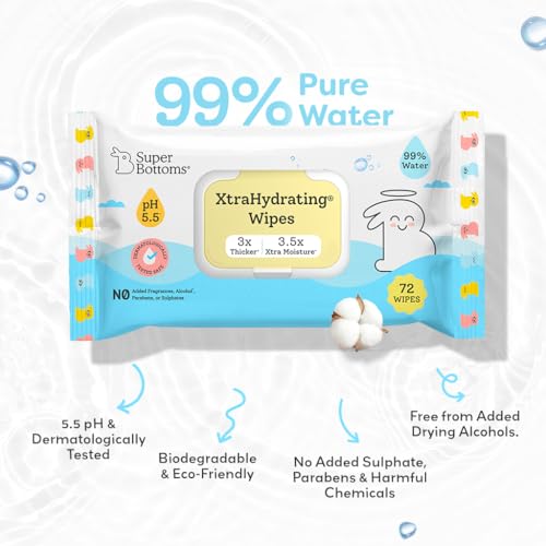 SuperBottoms XtraHydrating¢ Wipes - XtraThick¢ with Xtra Moisture | Doctor Tested Best Wipes (Mild Natural Fragrance) | 3.5x Moisture Vs.Ordinary wipes| 72 Wipes - Pack of 5 360 pcs |Best baby wipes