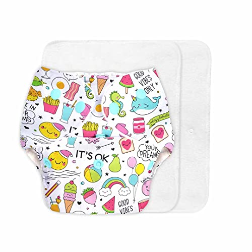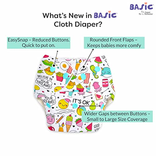 BASIC Cloth Diaper For Baby | Washable & Reusable Cotton Cloth Diaper | 0-3 Years | Freesize | Adjustable | Reduces Rash | With 2 Quick Dry Pad/Insert | Doodles |