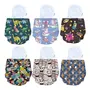 BUMTUM Cloth Diapers for Babies 0 to 3 Years | Pack of 6 with Inserts | Reusable Diaper for New Born Baby Freesize 5hrs Absorbency(Unicorn Teddy Face Space Old Dinosaur Wonderland & BabyShark)
