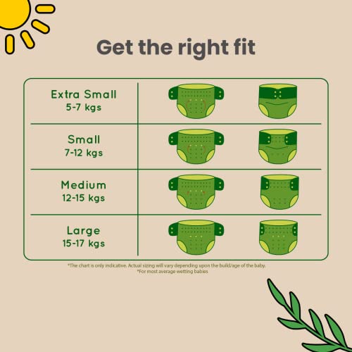 ADJUSTABLE BUTTONS TO FIT ALL SIZES: Our Diapers are made to fit all babies from 3 months to 3 years with 4 size varieties. Size XS for babies weighing 5-7 kgs S for 7-12 Kgs M for 12-15Kgs and L for 15-17 Kgs. The adjustable button design ensures a perfe