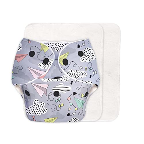 SuperBottoms BASIC Cloth Diaper For Baby | Washable & Reusable Cotton Cloth Diaper | 0-3 Years | Freesize | Adjustable | Reduces Rash | With 2 Quick Dry Pad/Insert | Airplane |