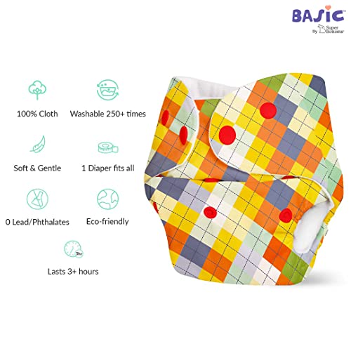 WATERPROOF ADJUSTABLE FREESIZE REUSABLE - Basic cloth diapers fit babies from 5kgs to 17kgs. You can easily adjust the size of the diaper to Small/Medium or Large/Extra Large depending on your baby's weight by snapping the buttons in the front. This helps