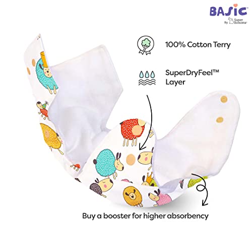 SuperBottoms BASIC Cloth Diaper For Baby | Washable & Reusable Cotton Cloth Diaper | 0-3 Years | Freesize | Adjustable | Reduces Rash | With 2 Quick Dry Pad/Insert | Sheep |