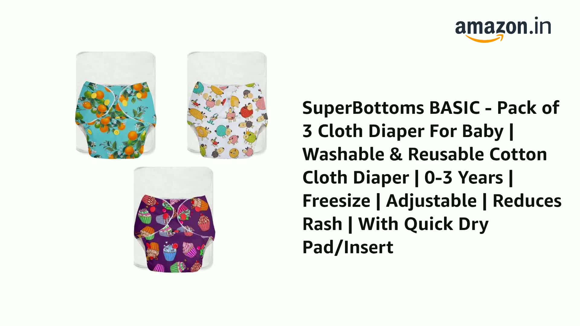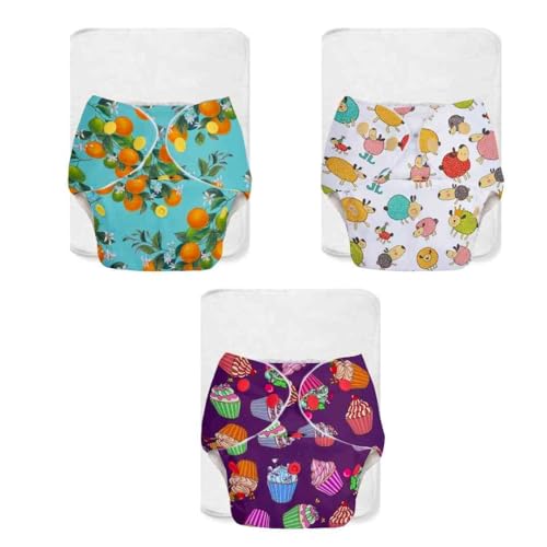 SuperBottoms BASIC - Pack of 3 Cloth Diaper For Baby | Washable & Reusable Cotton Cloth Diaper | 0-3 Years | Freesize | Adjustable | Reduces Rash | With Quick Dry Pad/Insert