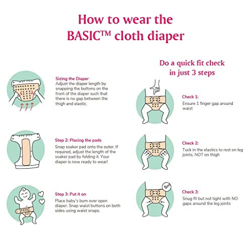 Adjustable Snaps BASIC Cloth Diaper has a unique snap system that allows it to fit a baby from 3 months to 3 years. Just adjust resize and wear. Its super easy! Light On Pocket It is a thoughtfully designed day diaper that comes at a super economical pric
