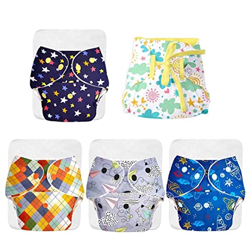 superbottoms Basic Pack Of 4 Assorted Cloth Diaper For Baby & 1 Dry Feel Langot (Fits 0-5 Kg)|Washable & Reusable Cotton Diaper For 0-3 Yrs|FreesizeAdjustable|Reduces Rash|With 4 Quick Dry Pad/Insert