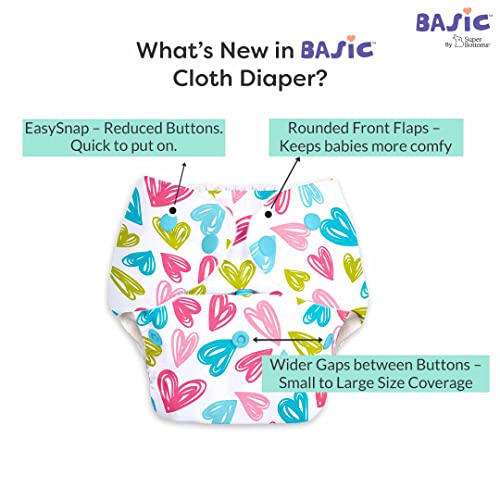 SuperBottoms BASIC Reusable Cloth Diaper with NEW Quick Dry UltraThin pads | 100% cloth Freesize Diapers for baby 0-3 Yrs |Stay Dry & Lasts up to 3Hrs | Trim Fitting, Dries 2times faster | Hearts