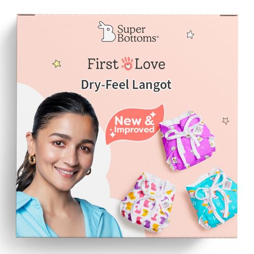 SuperBottoms First Love DryFeel Langot¢ for Newborn Baby | No Mess Langot | Premium Cotton Padding (No Sponge) | Ultra-Soft | Mess-Free Diaper-Free Time | 0-9M | (Bummy World Pack of 3 Large)