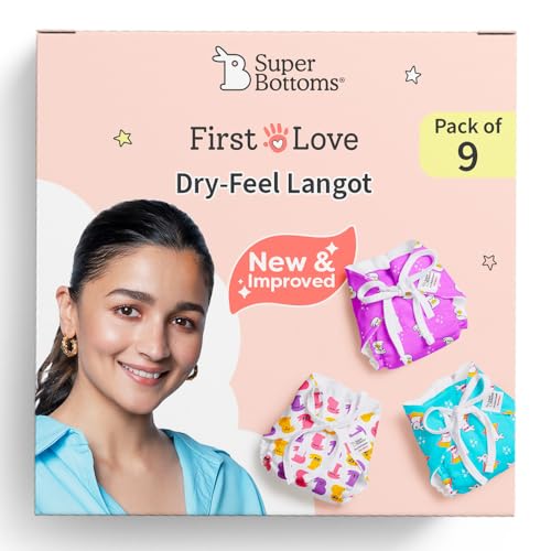 SuperBottoms First Love DryFeel Langot¢ for Newborn Baby | No Mess Langot | Premium Cotton Padding (No Sponge) | Ultra-Soft | Mess-Free Diaper-Free Time | 0-9M | (Bummy World Pack of 9 Small)