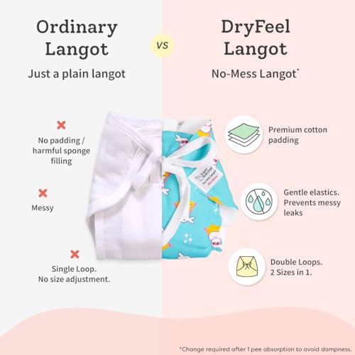 SuperBottoms First Love DryFeel Langot¢ for Newborn Baby | No Mess Langot | Premium Cotton Padding (No Sponge) | Ultra-Soft | Mess-Free Diaper-Free Time | 0-9M | (Printed Pack of 3 Large)