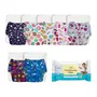 SuperBottoms FREE Wipes - 40 Pack with 7 BASIC Reusable Cloth Diaper with NEW Quick Dry UltraThin pads - Pack of 7| Freesize Diapers for baby 0-3 Yrs|Lasts up to 3Hrs|(7 Shell + 7 Pads) - Assorted