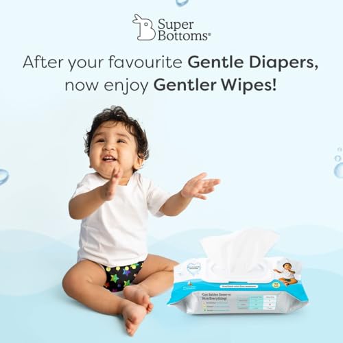 SuperBottoms FREE Wipes - 72 Pack with 7 BASIC Reusable Cloth Diaper with NEW Quick Dry UltraThin pads - Pack of 7| Freesize Diapers for baby 0-3 Yrs|Lasts up to 3Hrs|(7 Shell + 7 Pads) - Assorted