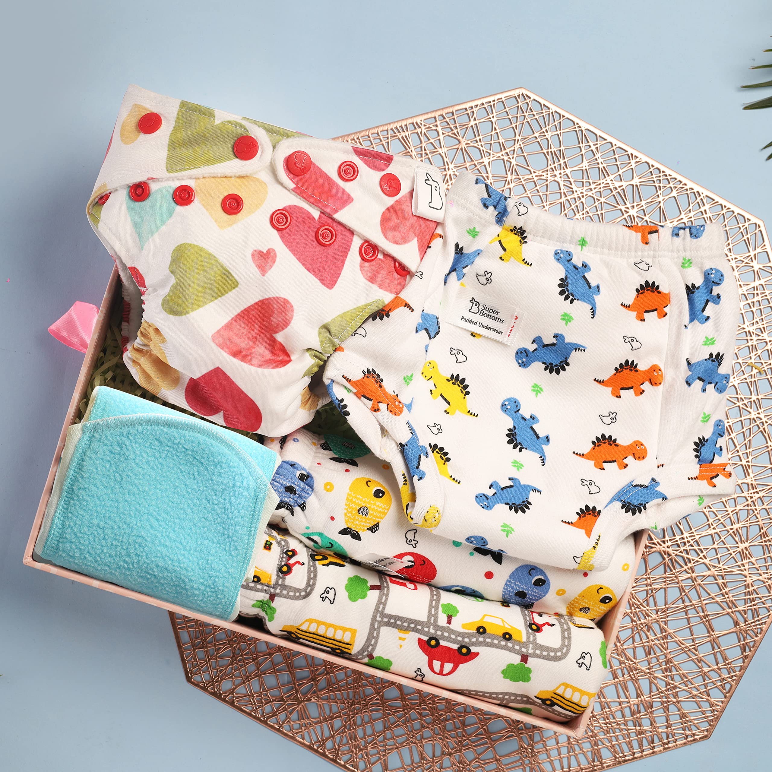 HomeBabyDiaperingCloth DiapersSuperBottoms Gift Combo Pack: 1 Freesize UNO and 3 Padded Underwear | Birthday Gift for 1-Year-Old Baby Girl & Boy | Pack of 5 Items