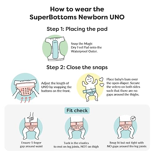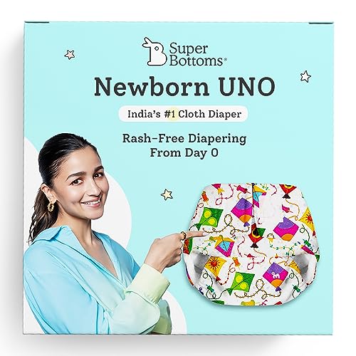 SuperBottoms NewBorn UNO Cloth Diaper | AIO Cloth diapers for babies | Cloth Diaper for Newborn Babies 0 to 6 months | Pack of 1 Cloth diaper with 1 insert (Coloured Skies)