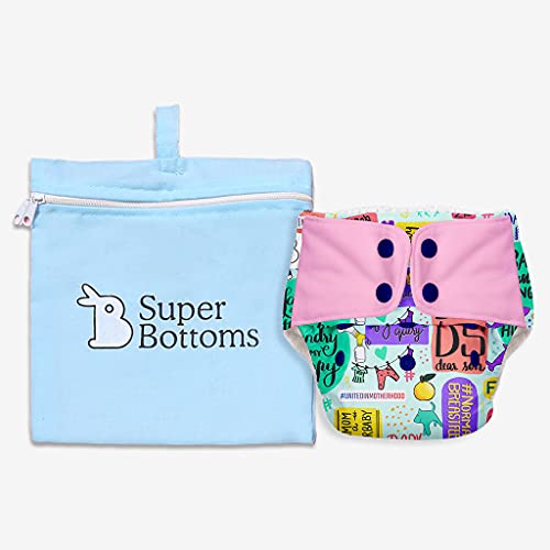 SuperBottoms Pack of 2 (1 Waterproof Outer + 1 Organic Cotton Dry Feel Magic) UNO Freesize Cloth Diaper with Extra Booster | Cloth diaper for babies 3M to 3Y |(Mommy Talk <3)