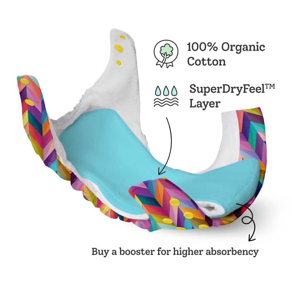 HomeBabyDiaperingCloth DiapersSuperBottoms Pack of 2 Cloth Diapers for babies and XtraHydrating Wipes-72 Pack-Freesize Washable & Reusable waterproof Adjustable cloth diaper for babies from 5-17kgs|Diaper with 2 Dry Feel Pad