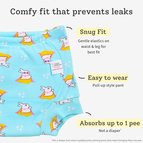 • IDEAL FOR POTTY TRAINING AND DIAPER-FREE TIME: SuperBottoms Padded Underwear is designed for the active toddler who needs to be potty trained or simply needs a break from the diaper. It is semi-waterproof and holds up to 1 pee and is ideal for diaper-free