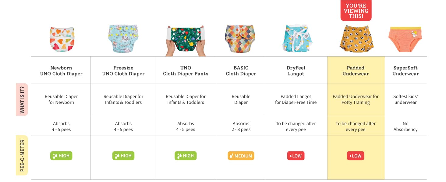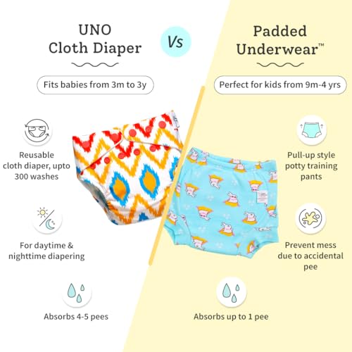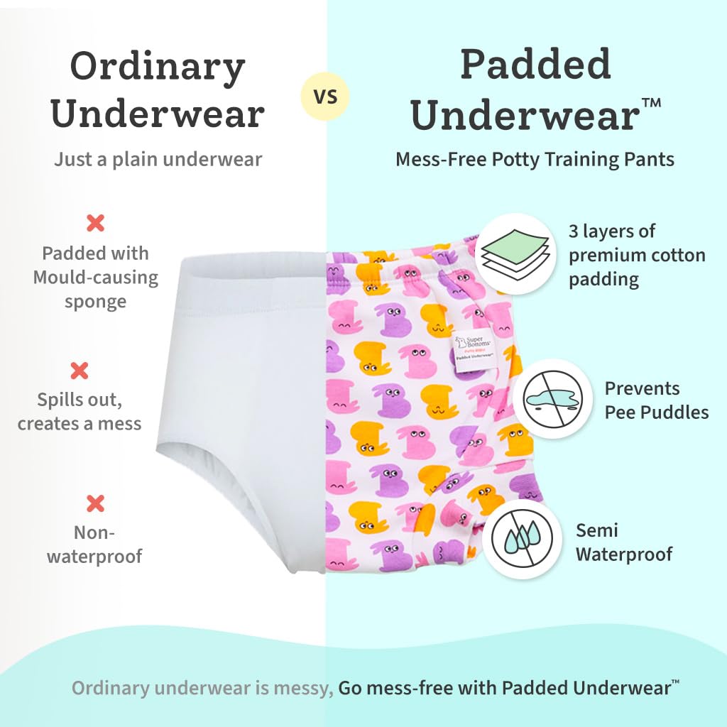 • "COTTON PADDING: SuperBottoms Padded Underwear has 3 Layers of 100% cotton padding which helps in preventing leaks and messy pee accidents. It is Semi waterproof and has a SuperDryFeel Layer on top to avoid a pool around the baby. "