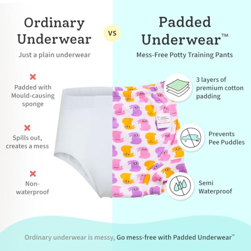 • CONTENTS: Pack of 3 Size 0 Padded Underwear - Easy to wear pull-up style pants with 3 layers of Cotton Padding for your toddler. Skin-friendly and semi-waterproof potty training underwear