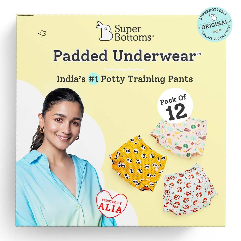 HomeBabyDiaperingCloth DiapersSuperBottoms Padded Underwear For Growing Babies/Toddlers|With 3 Layers Of Cotton Padding & Super DryFeel Layer| Pull-Up For Potty Training & Diaper-Free Time(Jungle Jam, Size: 2, Pack of 12)