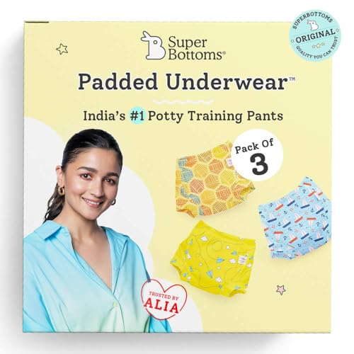 superbottoms Padded Underwear¢ | for Potty Training & Mess-Free Diaper-Free time | Prevents Pee Puddles | 3 Layers of Premium Cotton Padding (No Sponge) | Pull-up Style Potty Trainers - (Pack of 3)