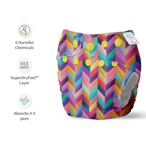 Diaper Consistes of 1 Waterproof Outer and 1 Magic Dry Feel Pad Magic Dry Feel Main Pad consists of 9 layers (after folding) of GOTS Certified 100% Organic Cotton with a MagicDry layer on top to keep your babys bum dry
