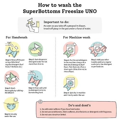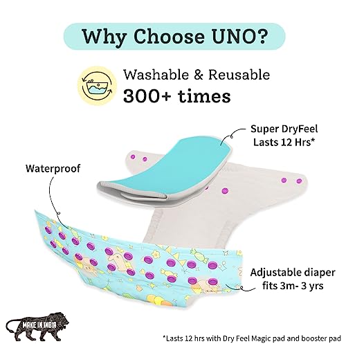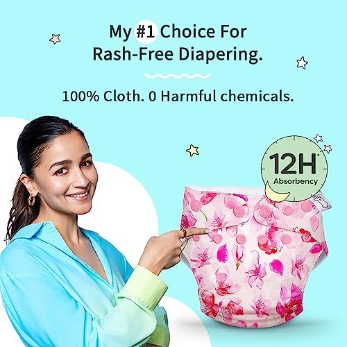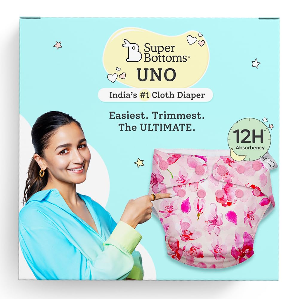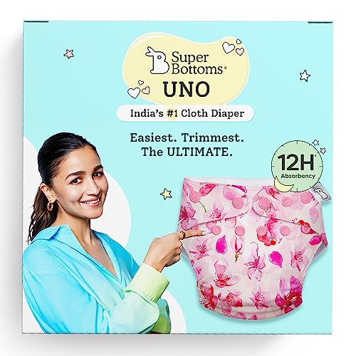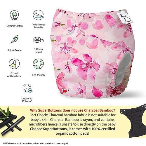 SuperBottoms UNO Freesize Cloth Diaper | Cloth diaper for babies 3M to 3Y | Comes with cloth diaper inserts | 1 Organic cotton Soaker + 1 Booster | Cherry Blossom