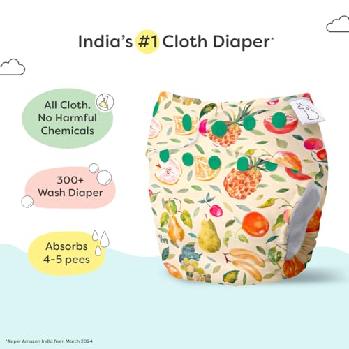 SuperBottoms UNO Freesize Cloth Diaper | Cloth diaper for babies 3M to 3Y | Washable & Reusable cloth diaper | Comes with cloth diaper insert | 1 Organic cotton Soaker (Fruit Burst)
