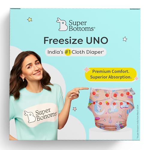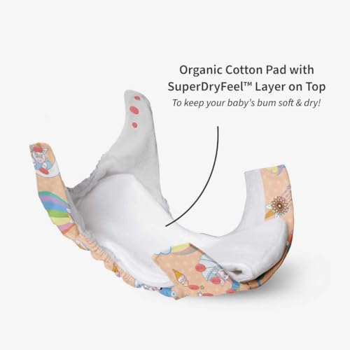 SuperBottoms UNO Freesize Cloth Diaper | Cloth diaper for babies 3M to 3Y | Washable & Reusable cloth diaper | Comes with 1 Outer Shell + 1 Organic Cotton Pad + 1 Booster | Unicorn