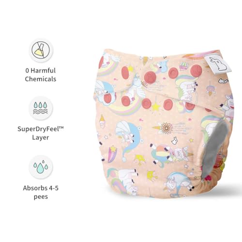 SuperBottoms UNO Freesize Cloth Diaper | Cloth diaper for babies 3M to 3Y | Washable & Reusable cloth diaper | Comes with cloth diaper inserts | 1 Organic cotton Soaker + 1 Booster | Unicorn