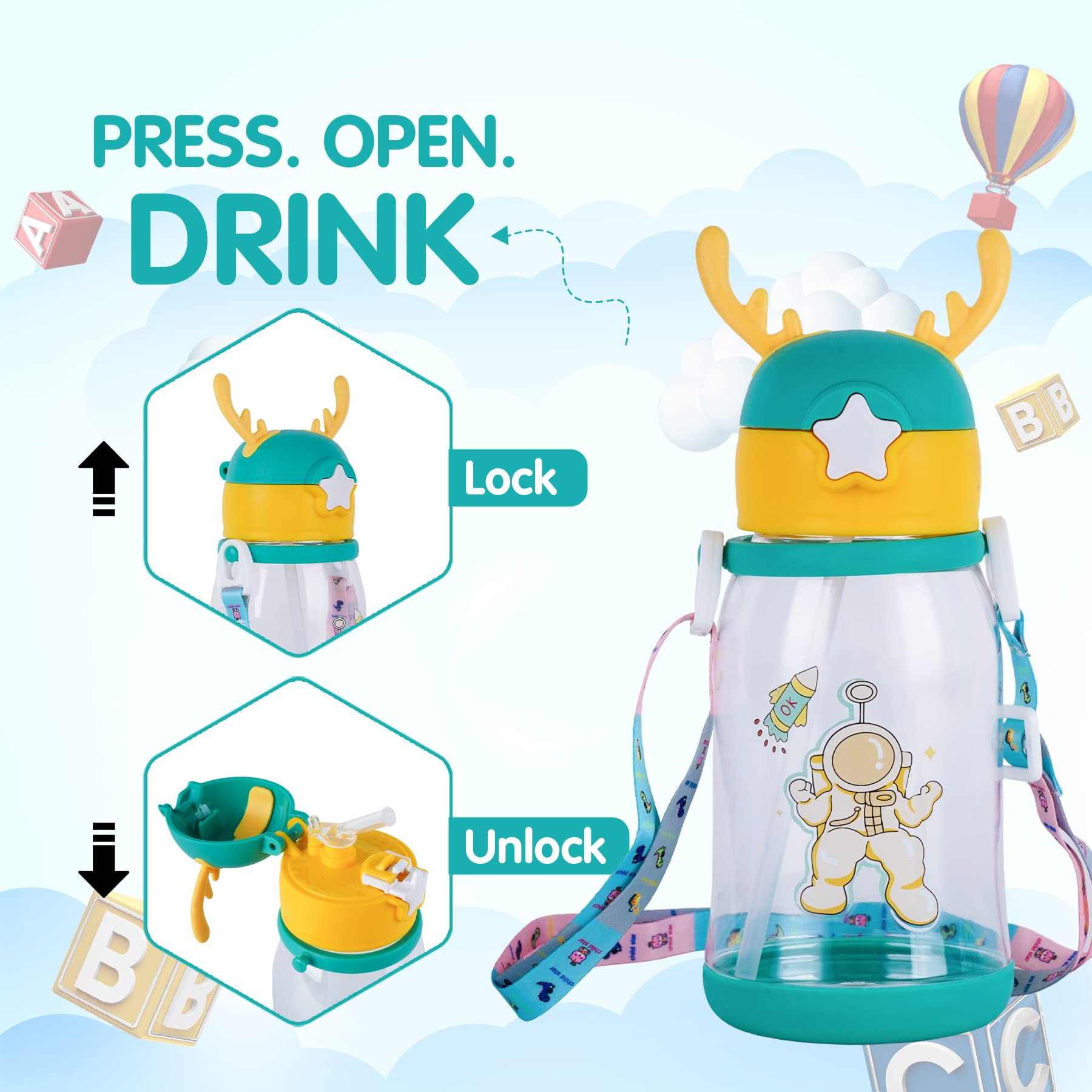 SKYTONE Cute Kids Water Bottle with Sipper Water Bottle for kids Sipper Bottle for Kids - Anti-leak Cartoon Kids Water Bottle for Kids (600 ML) (Green)